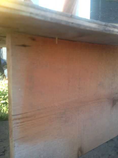 Es más fácil con dos personas ayudando! Mi hermana me ayudó con este proyecto. Si se quiere ser preciso, use la cinta métrica y lápiz para hacer las líneas rectas para saber dónde poner la tabla. Una persona tendrá un extremo de la junta grande y se deslice un tablero más pequeño debajo. Martillo sobre la madera. Asegúrese de que los clavos no sobresalgan.