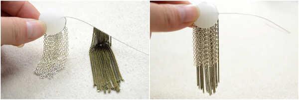 7, cadena de las cadenas de bronce 7cm con el mismo final del alambre y del hilo de rosca a través de la cuenta igual. Después apriete el hilo, usted conseguirá el efecto como abajo cuadro demuestra: