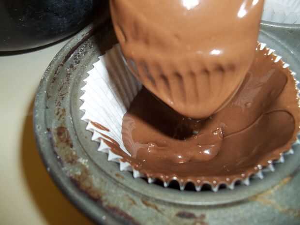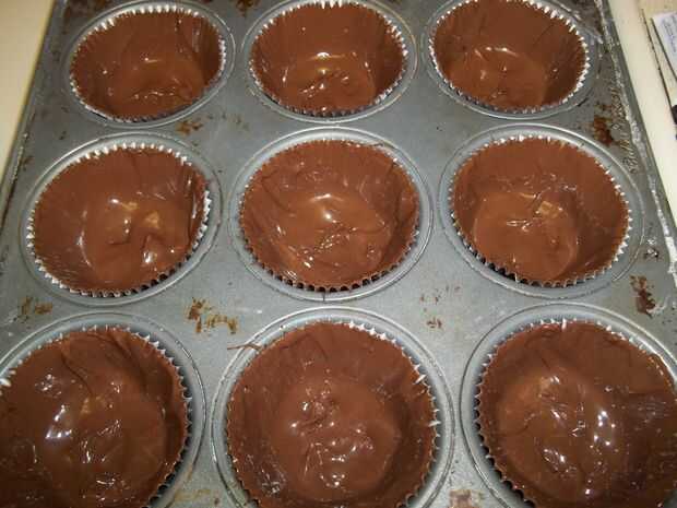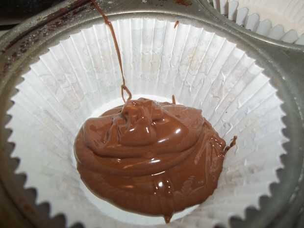 Sacar una pequeña cantidad de chocolate en una funda de papel y use una cuchara para mover el chocolate por los lados de la funda. Cuando han cubierto sus forros de papel guárdelos en el refrigerador hasta que esté frío.