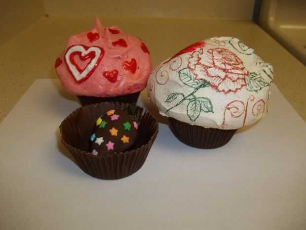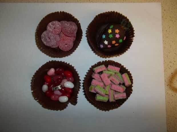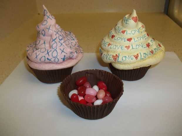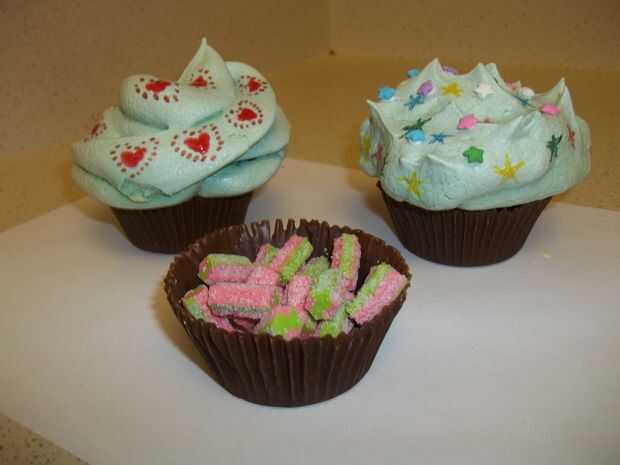 Divertirse llenando sus magdalenas con cosas como dulces, fresas cubiertas chocolate y joyería. Coloque sus toppers de merengue en el fondo chocolate y disfrutar su delicioso comestible de la Magdalena.