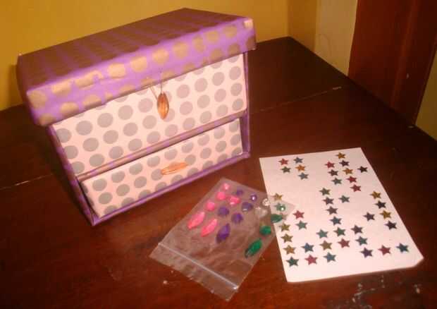 Usted puede usar pegatinas, piedras, perlas o lo que quieras, para decorar la caja. Hecho!