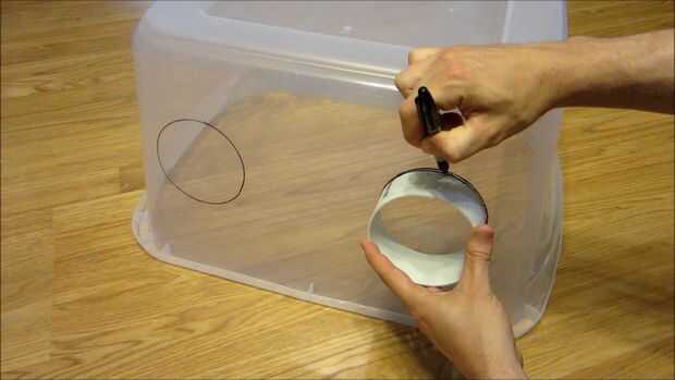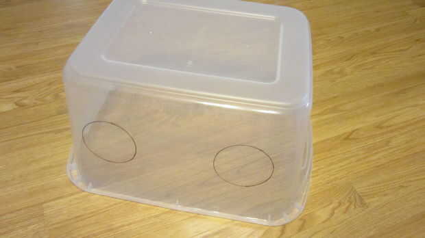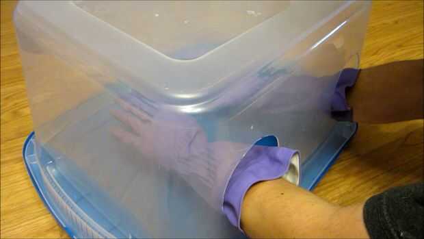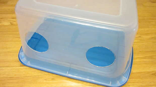 Para hacer esto, necesita un par de guantes y una tina de plástico claro. Tratar de encontrar una tina de por lo menos en su mayoría transparente. Usted necesita ser capaz de ver claramente lo que está haciendo cuando se trabaja en la guantera. Empezar por decidir dónde se ubicarán los puertos de brazo. Que quieras ser espaciadas lo suficiente para que los brazos estarán en una posición cómoda durante el trabajo. Trazar un círculo de diámetro de 4 pulgadas para cada puerto de brazo. Luego cortar cada círculo con un cuchillo o herramienta rotativa.
