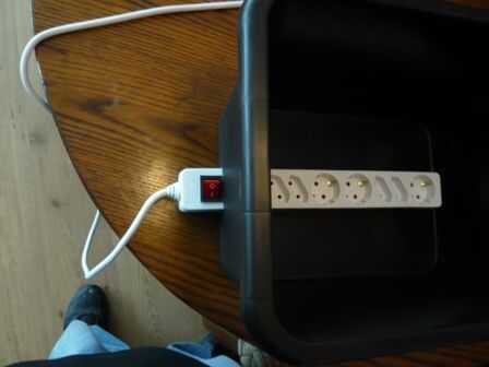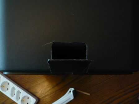 Sólo dibujaba alrededor de powerstrip sosteniendo contra la caja y luego cortar el agujero con un cuchillo.