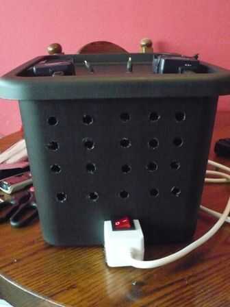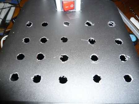 Después de leer algunos comentarios sobre el hecho de que estas cajas podrían calentarse un poco con todos los adaptadores dentro, decidí perforar algunos agujeros para la ventilación en la parte posterior.