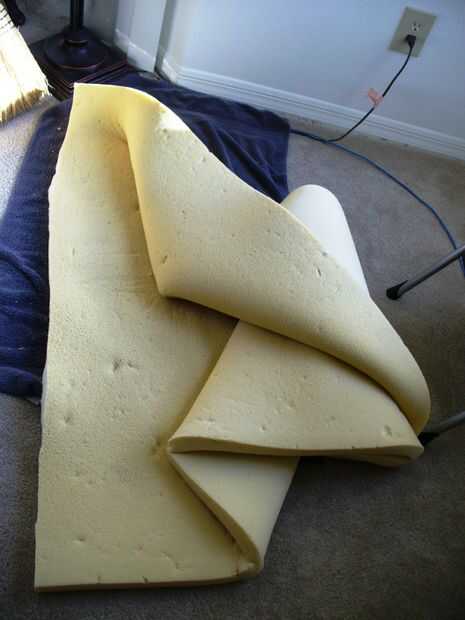 La espuma que utilicé era realmente una parte de corte de espuma de un amortiguador de la cama. Usted sabe, como los cubrecolchones de espuma de memoria. Consiguió una cama nueva, pero no quería lanzar a la acera! Además, sólo tenía que utilizar una pequeña porción de él, así muchos sobrantes para futuros proyectos.