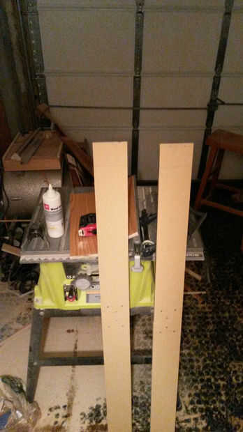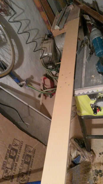 Yo soy piecing juntos desechos, usé una pequeña plaza para unirse a las tablas más grandes. Hacer que el tablón superior más corto. Desea que esta pieza de mobiliario que fondo pesado por lo que el espejo cuelga derecha.