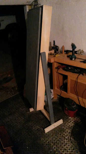 Entré las piernas entre sí con un tablero en la parte inferior un poco más de estabilidad. Luego he añadido un "pie" de 15" pieza en cada pierna para completar la configuración del pie
