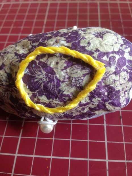 Cortar un trozo de cuerda de sisal y fíjelo con la goma aglutinante en el exterior del huevo formando un círculo. Esta parte del huevo será la base de la caja de regalo. La caja de regalo del huevo estará en su lugar con un balanceo.   :)