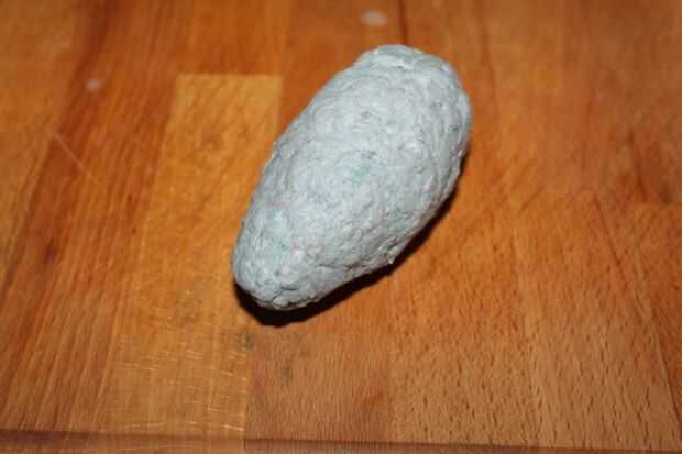 Squeez el agua forma y envoltura de la goma sobre el huevo y el grifo con los dedos para hacerlo liso e incluso.