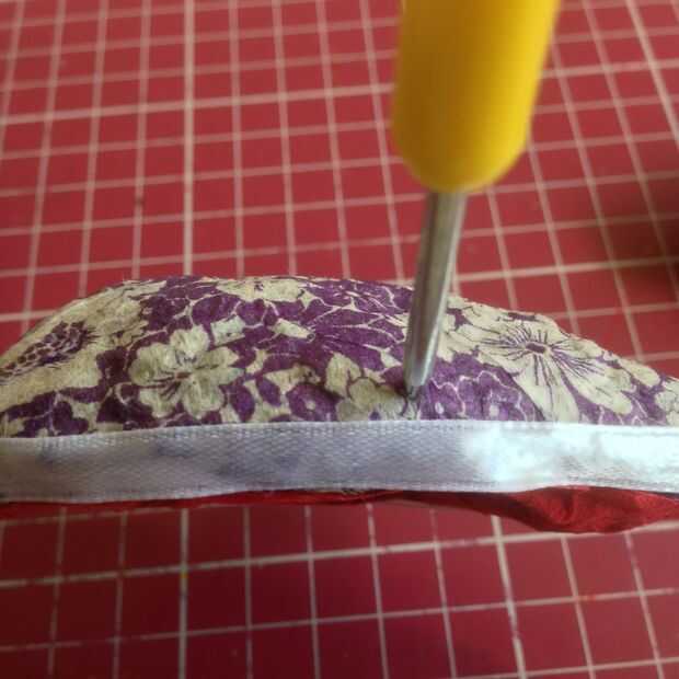 Corte de 3 pulgadas de elástico. Unir los dos extremos y un nudo, formando un bucle.