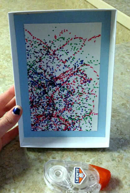 Luego, aplique la cinta a la parte posterior de su obra y presione con firmeza en el interior de la parte inferior de la caja.
