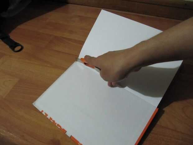Primero, quite la almohadilla de papel y tomar la brillante laminado fuera de la cubierta. La cubierta fue cortada para obtener 15 x 24 cm y la columna vertebral alrededor de 1 cm.