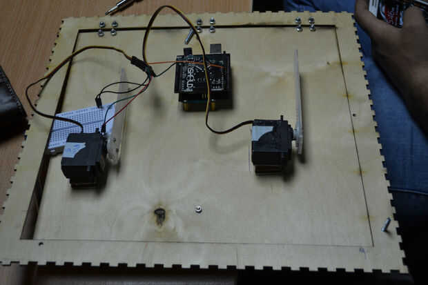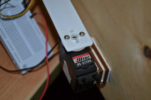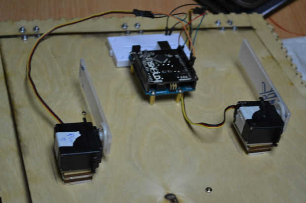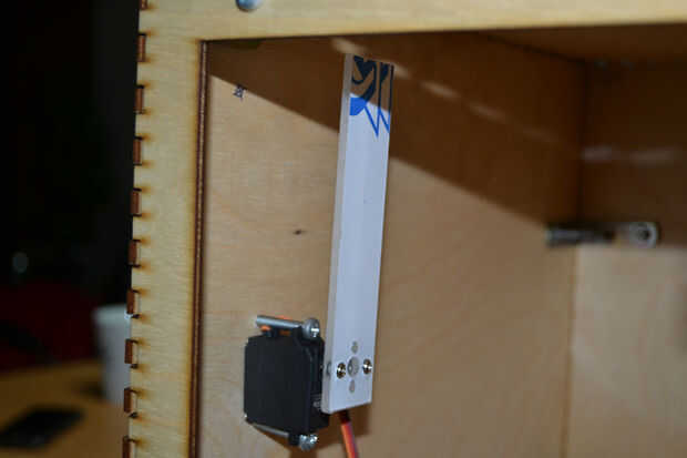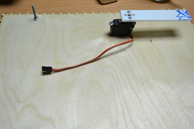 Usé M4 tornillos y tuercas para fijar los servomotores y correas de lazo de Cable de Nylon y cinta de pegamento de doble cara para fijar los servos a la puerta segura.