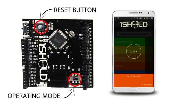 Nota: Si usted está teniendo problemas para por favor, asegúrese de que está encendido el bluetooth para tu teléfono Android y que el teléfono Android esté cerca de su 1Sheeld.