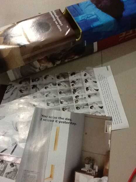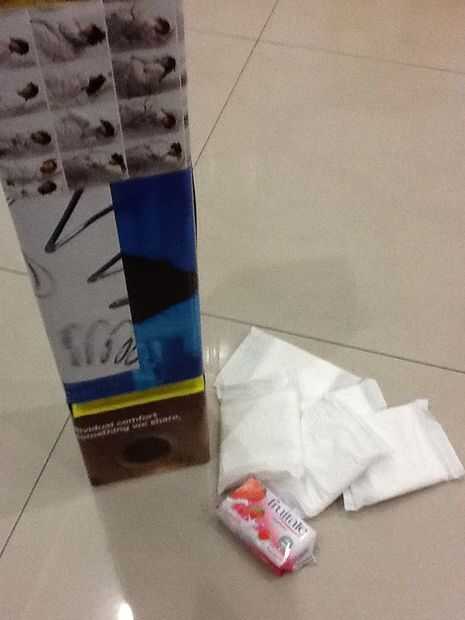 Envolver la caja con la revista antigua. Ahora usted puede mantener la almohadilla sanitaria en la caja. Poner la barra de jabón en la parte superior del cojín sanitario como un peso empuje el botón hacia abajo y también hacer la almohadilla de olor bueno.