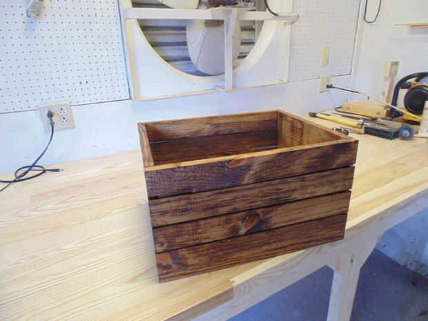 Se trata de un simple cajón de madera, hecho de una sola sobra cerca madera de pino y un pedazo de madera desechado. Se une por una combinación de pegamento para madera, clavos y una rudimentaria lengüeta y ranura.Es sorprendentemente ligero (siendo