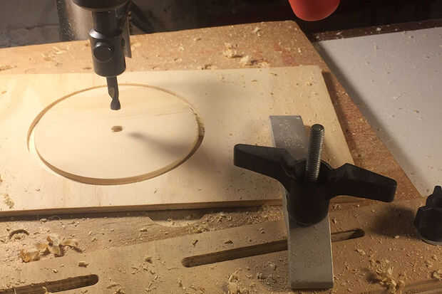 Como la tapa trasera era demasiado grande para caber en mi taladro que tenía que volver creativa. Encontré un buen trozo de contrachapado de 5mm que encajaría en el taladro y un patrón así que pude hacer la boca en la mesa de fresadora.