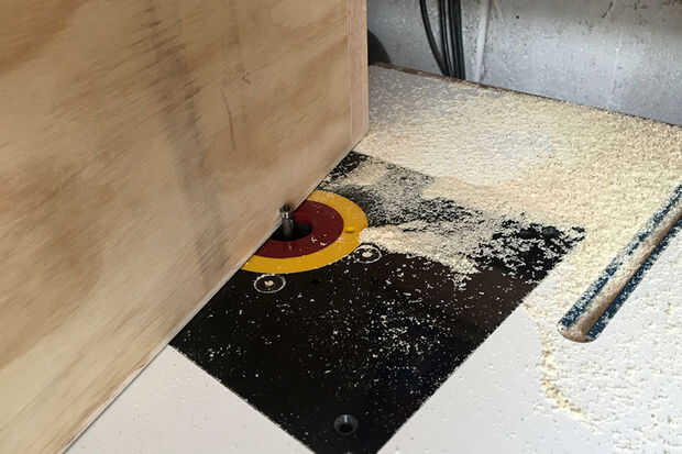 El alero en las tapas fue dejado así pude pase a la forma del cajón con el patrón de bits en la mesa de fresadora consiguiendo un mejor ajuste.