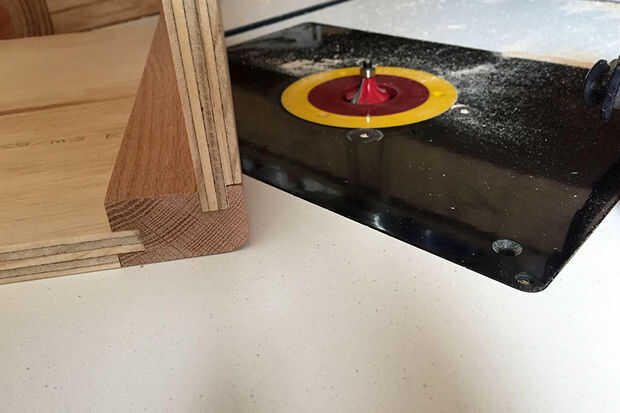 Espera de las tapas secar, fui a los lados del cajón con un poco roundover en la mesa de fresadora, hizo varias pasadas pequeñas convirtiendo el cajón para emparejar las curvas a ambos lados.