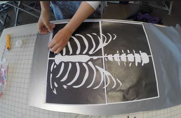 -Una vez que todo se corta, con cuidado retire el papel y utilizar magia Scotch cinta a cinta de tu corte de piezas por. Utilice piezas largas para sujetar las piezas a la pieza de de que corte. Esto mantendrá la imagen en su sitio y todas sus piezas en el lugar que mueves a tu sudadera.