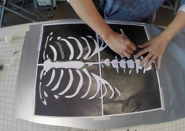 -Utilizar una x-acto con una cuchilla nueva y empezar a cortar! Esto tomará algún tiempo, tardé unos 20 minutos para terminar la caja torácica. Tomar descansos, vas lento y no tenga miedo de ir fuera de las líneas. He hecho pequeñas alteraciones cuando fui a la imagen.