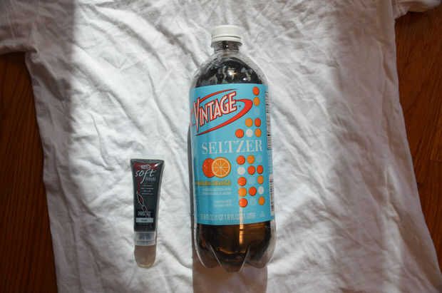 Lo primero que hice fue por goteo aproximadamente una cucharada de pintura de tela suave en una botella vacía y añadir algo de agua. Diluir la pintura de tela suave hace que sea se comportan más como tinte. Me encantan las rayas que hace en la camisa cuando usted cuelgue a secar, y hay un poco de brillo en la pintura. :)