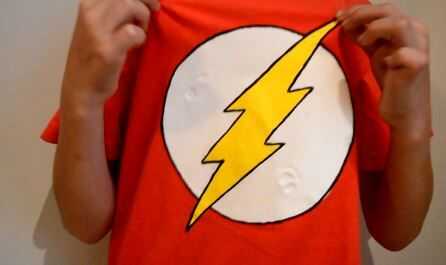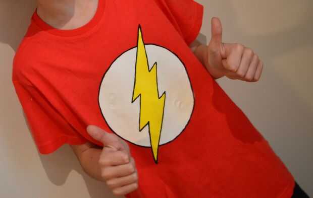 Mi hermano y yo somos grandes fans del Flash (la serie de TV) y él quiere ser como él y siempre está pensando en ello así que decidí hacerle una camiseta para que él podría fingir ser Flash y juego y yo sabía que esto le haría tan feliz y me encanta hacerle feliz a jugar con él, así que tuve que hacerlo.