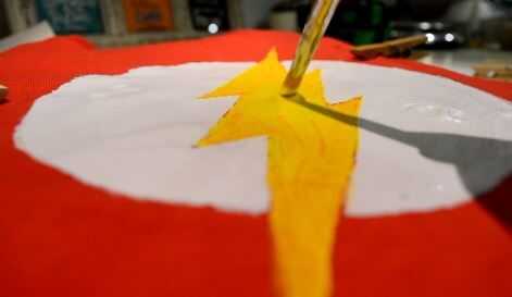 Antes de empezar a pintar tienes que colocar la cartulina dentro de th camiseta para que la pintura no va a través de la tela. Luego tienes que colocar la primera insignia donde quieras y pegarlo a la t con alguna cinta. Vuelva a colocar las pinzas para asegurar todo y empezar a pintar con blanco. Usted tendrá que darle algunas capas y cuando termines tendrás que planchar para que la pintura no sale cuando usted lava la camiseta. Coloque el otro logo y comienzo pintura amarilla, luego cuando esté satisfecho con el resultado de la plancha otra vez.