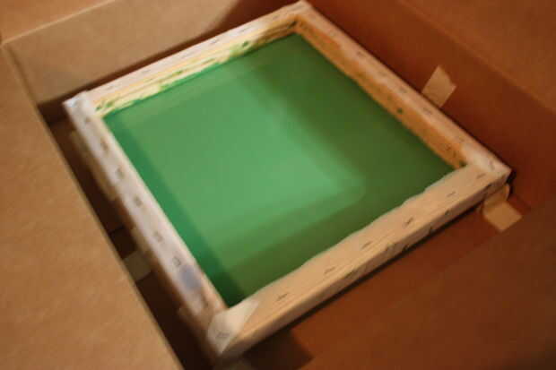 Después de las pantallas de la capa, necesita colocar estas en un lugar oscuro para secar. Coloqué mi en bandas dentro de cajas de cartón que pude de cinta cerradas para mantener la luz hacia fuera. Estos deben permanecer en un lugar oscuro para evitar el curado de la emulsión de la foto.