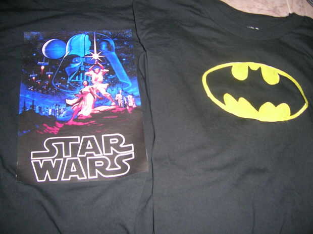 pero cualquiera que probablemente 50% de mis camisas. a continuación se muestran 2 formas diferentes de hacer camisetas que la de la derecha es obviamente el logo de batman que se hizo bastante simplemente mediante el uso de tutorial de "Otra plantilla de camiseta" de Jordania. la única diferencia es mantuvo el papel de congelador en esperando que se seque luego aplicar una tinta amarillo entonces quitó el papel de congelador y deja que se seque. Sin embargo el de la izquierda tiene muchos diversos colores y esas cosas. para este tipo de diseño de la camiseta, necesita hacer una carrera a walmart.