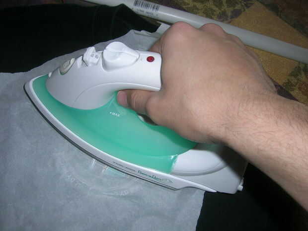 ahora tienes que retire el frontal delgado de grueso "parecido al papel de foto de". Vea la foto. Después saque el hierro, poner a heat.let completo / alta conseguir tan caliente como puede ser. el lugar que vas a poner el diseño en del hierro. Esto hace que para que una superficie mejor para ponerte. Ahora coloque el diseño sobre la camisa, poner un pergamino en la parte superior del diseño. Ahora coloque la plancha caliente sobre el diseño que está ahora debajo el papel sulfurizado hacer seguro para conseguir la bordes del diseño o diseño no permanece mucho en la camisa. toma el papel de hierro y pergaminos que el fresco diseño en unos 30 minutos más Repita los pasos de plancha Esto asegurará un gran asimiento / stick. el negro se ve mucho más claro que la camisa pero al hacer el proceso de hierro todos los colores son más audaces y más oscuro