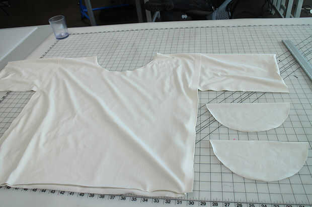 -Poner tiras de adhesivo, a lo largo del debajo de los brazos, desde el borde del dobladillo de la manga, poner fin. 5" más allá del punto de la axila. Lo mismo para la costura lateral de la camiseta. Asegúrese de tener un. 5" se superponen en el punto de la axila, esto ayudará a que dure más, ya que este punto puede colar a través de desgaste y el rasgón.