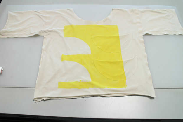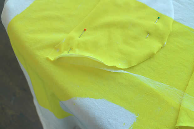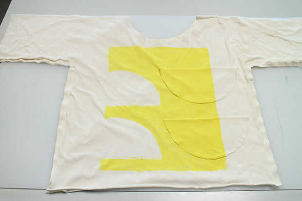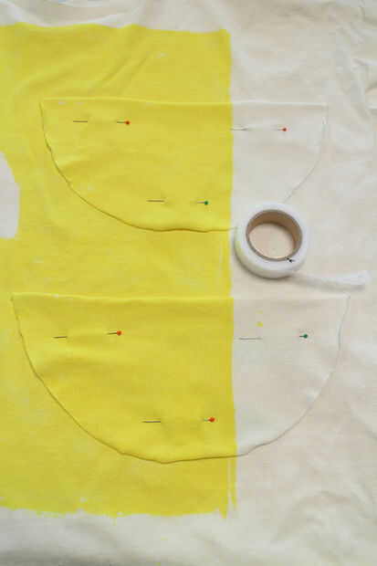 -Tome los 2 semicírculos, creados mediante la reducción de su círculo de cuello por la mitad y colocarlos donde quiera que te gusta en tu camiseta. Mina había colocada de manera que mi patrón de tinte.