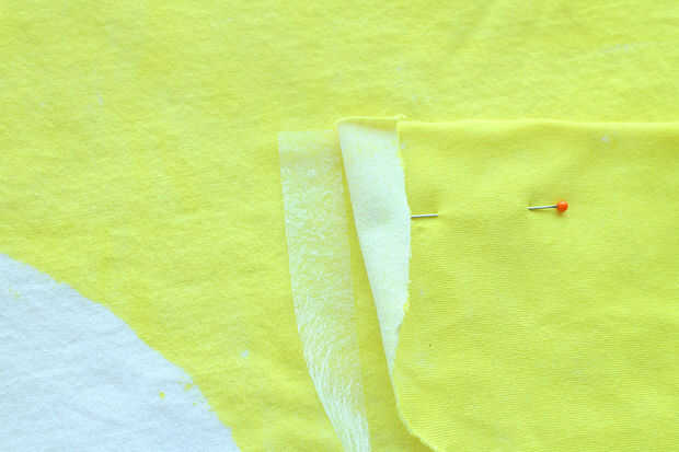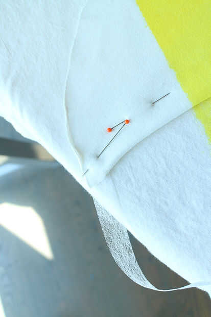 -Prender sus bolsillos en su lugar, asegurándose de dejar unos 5/8" de los bordes del bolsillo inferior flojo para que puedas obtener el adhesivo por debajo.