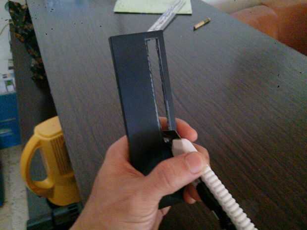 Altura Xperia Z tiene una medida de 138mm y 8mm de espesor. Luego cortamos un agujero ligeramente más grande en la portada de unidad de PC. Hacerlo 140 x 10 mm. Es la cubierta superior. Este corte requiere un esfuerzo más en la realización y por favor hacerlo con seguridad y paciencia. No corte la mano.