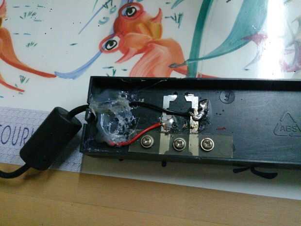Al principio que quiero solo pegamento con pistola de pegamento caliente, pero entonces se cruzaron en mi mente que se pondrá caliente cuando carga y pegamento caliente se derretirá. A continuación, utilizar una regla de plástico roto (o cualquier plástico duro) y algunos tornillos para sujetar los conectores en su lugar.