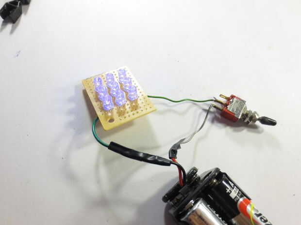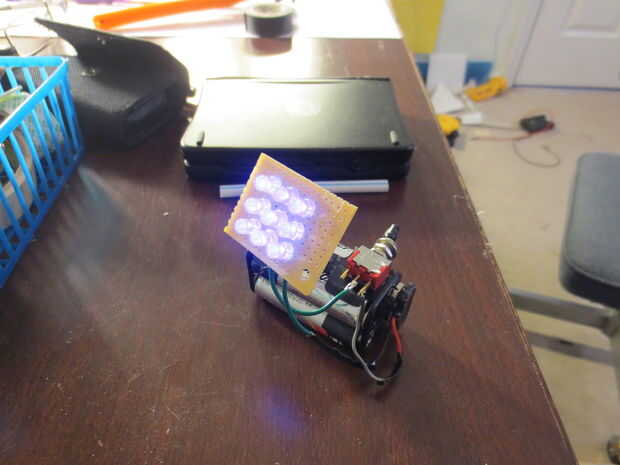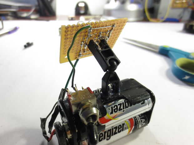 Entonces usted necesita fijar la Junta perf a la caja de la batería. Usé uno de esos swivly K'NEX, que me permite inclinar en múltiples direcciones. Ver fotos para más instrucciones.