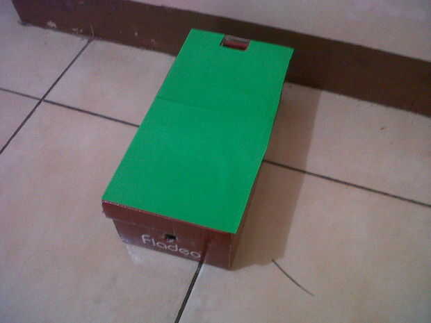 decorar su caja de zapatos para que se vea atractivo! después de eso, pregúntale a un amigo a ver la casa de terror a través del agujero en la side.when de la anchura que mirar en el agujero, encender la lámpara del LED en el agujero en la lid.blink el LED para hacer más espeluznante!