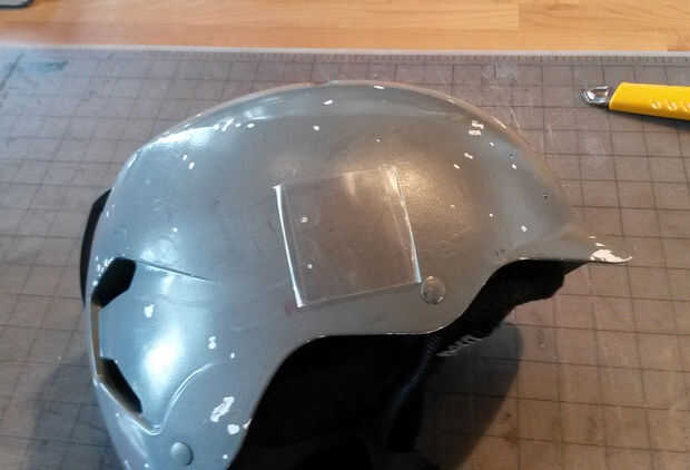 cosas que usted necesitará.Papel machéVelcrowPintura en aerosol blanco brillantePintura de acrílico negroChinchetas plataCasco del ejército de jugueteAntena de radioUn botón grande y dos pequeños botonesEspuma de artesaníaBloque de lijadoElástico2 gl