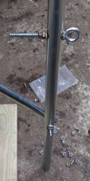 Cuando haya terminado con los soportes transversales, taladro y tornillo en un perno de ojo en el centro de los lados izquierdo y derecho, mirando hacia fuera.