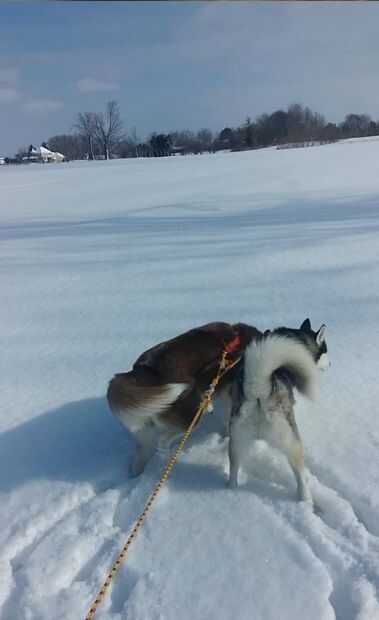 Con los esquís encerados para arriba e incluso con arnés normales, realmente tiene muy poco esfuerzo para el perro me tire con los esquís encerados para arriba. Paseos como un sueño! Yo no podría estar más satisfecho. Usted notará que estamos montando directamente a través de la nieve no embalado en campos abiertos (que necesita caminos correcto?). Usted puede decir cómo profundo es por la cara de Kiba (enterrado en la nieve). Ordené a arneses de x-back fit personalizados adecuados para los perros. Debe ser en el correo pronto, para mayor comodidad del perro y añade potencia de tiro.