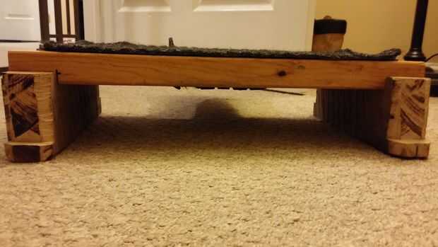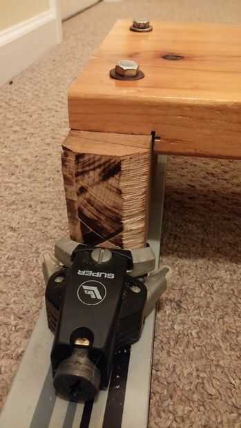Corté mi plataforma de una pieza reciclada de 2 x 10. Sentí que 18 pulgadas desde el centro de cada esquí era una cómoda distancia de los rieles ser espaciados. Su espaciamiento de esquí también determinará la anchura que el manillar y barra de remolque serán necesario. Recomiendo usa una mesa de sierra con una guía para corte las muescas de la plataforma. La plataforma está atornillada con dos 5/16 "x 3 1/2" hexagonal tornillo de fijación tornillos de cabeza en cada inserción. Pre-perforados los agujeros para los tornillos y luego poner unas gotas de aceite en cada perno, por lo que fueron más fácil y no encajen cuando trinquete hacia abajo. Si recuerdo mal, pretaladrados la plataforma con una broca de 5/16 bits y los insertos fueron previamente perforados con un taladro de 1/4" bit, manera que todo obtiene juntos. Si querido, incluso podrían reducir el borde frontal de la plataforma en un ángulo de 45 grados, en cuanto a reducir la resistencia por alentar nieve y cepillo para pasar por debajo del trineo más fácil...