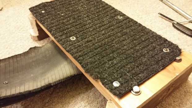 Después de que la plataforma fue agregada, me corte una sección de alfombra mat de piso de caucho de la tela y había atornillado encendido. Sin embargo, después de probarlo más adelante, noté que tomó días para la alfombra probar después de la nieve empapado a través, así que quizá que podría mejorar esto más tarde con algún tipo de sistema de velcro industrial matanza excesiva para fijar la alfombra estera de puerta, así que puedo quitarlo para secar.