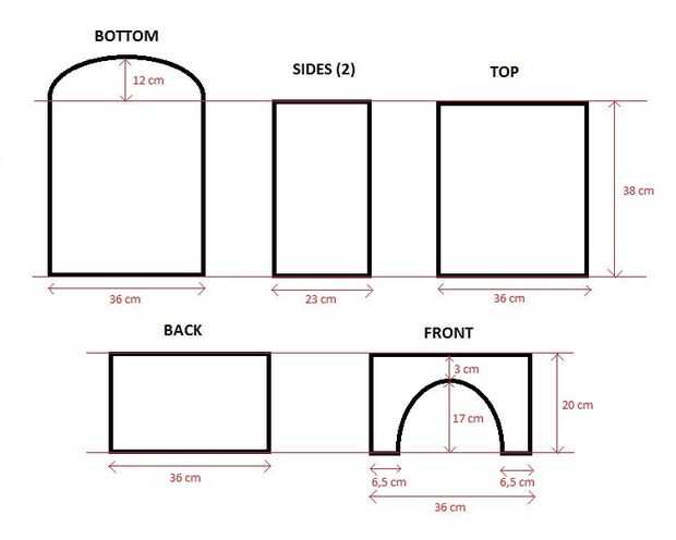 - el frente es igual a la pieza posterior con una ronda de "puerta" en el medio, como se puede ver en el dibujo.