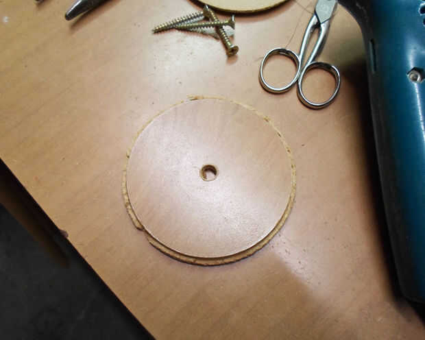 Otra cosa que he hecho es cortar algunos discos delgados de madera para poner debajo de las piezas base, pero que no es tan importante.