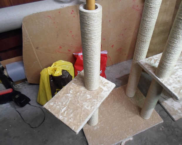 Hace varios años cuando mi hijo estaba en scouts por su proyecto de águila hizo unos árboles de gato docena para donar al refugio local para dar a la gente que adopta un gato. Puesto que él tenía un gran número para hacer surgió con algunas técnicas