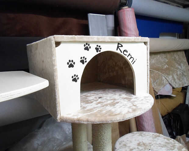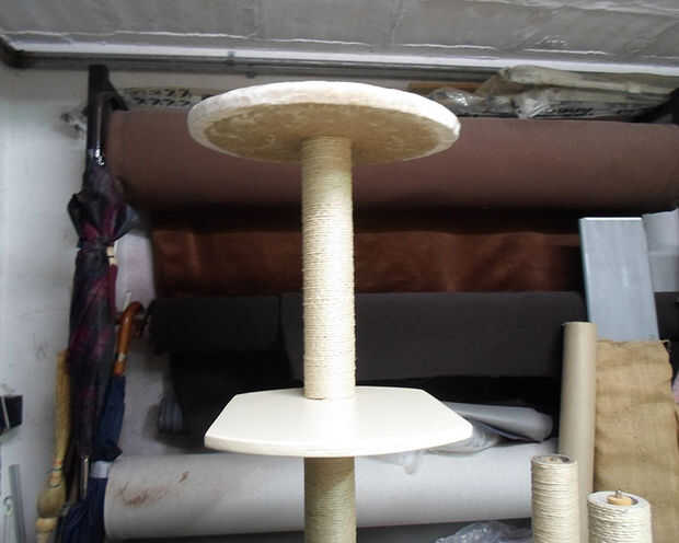 Hacer agujeros en las 2 muestras usando un taladro, ponga el gato en las varillas de la casa otra vez y fijar el conjunto con 2 tornillos en los agujeros.