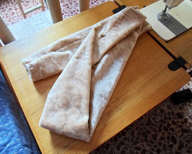 Doblar por la mitad a lo largo con la parte posterior lateral en la parte delantera y coser junto a los dos bordes, a unirse a ellos juntos.