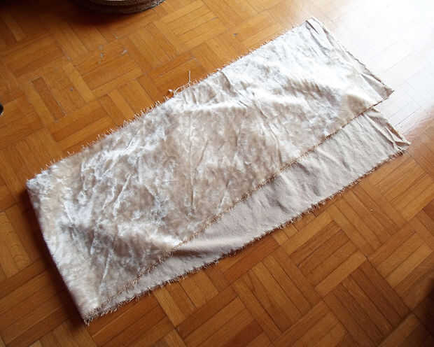 Corte un pedazo largo de tela (siempre el mismo) que es siempre y en la circunferencia de la tapa redonda y unos 30 cm (11,81 pulgadas) de gran.
