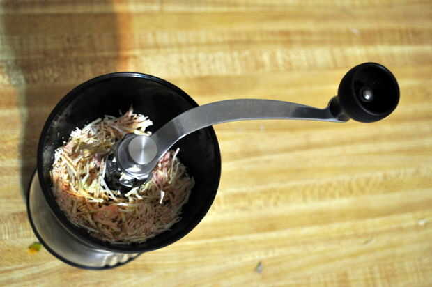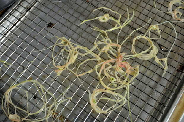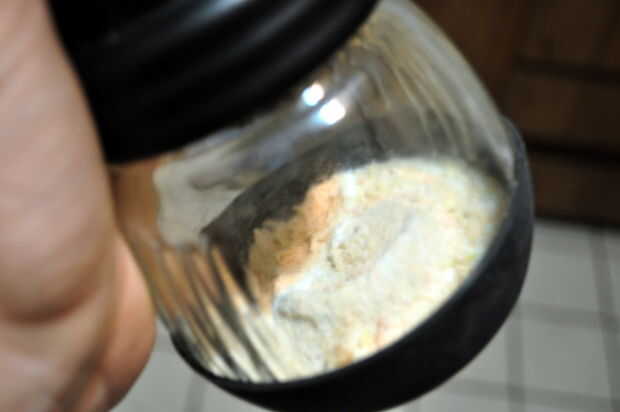 Bien gracias al poder de instructables ha sido 3,5 horas y nuestra cebolla es seco y desmenuzable.  Usted puede decir que la cebolla se hace cuando se miran como la imagen de abajo y romper fácilmente bajo presión.  Ahora que la cebolla está listo para ser pulverizado si usted es como yo las piezas son en grandes para ir a la derecha en su molino.  Así que colocar los grandes en su tarro usando su dedo pulgar hacerlos más pequeños.  Una vez que descarga de las piezas en su molino y llegar al arranque.  Una vez que tengas el polvo finalmente puede hacer esas galletas sabrosas que comenzó esta aventura.  Cualquier polvo sobrante debe ir en un tarro hermético y puede tratarse como haría cualquier comercial de cebolla en polvo.